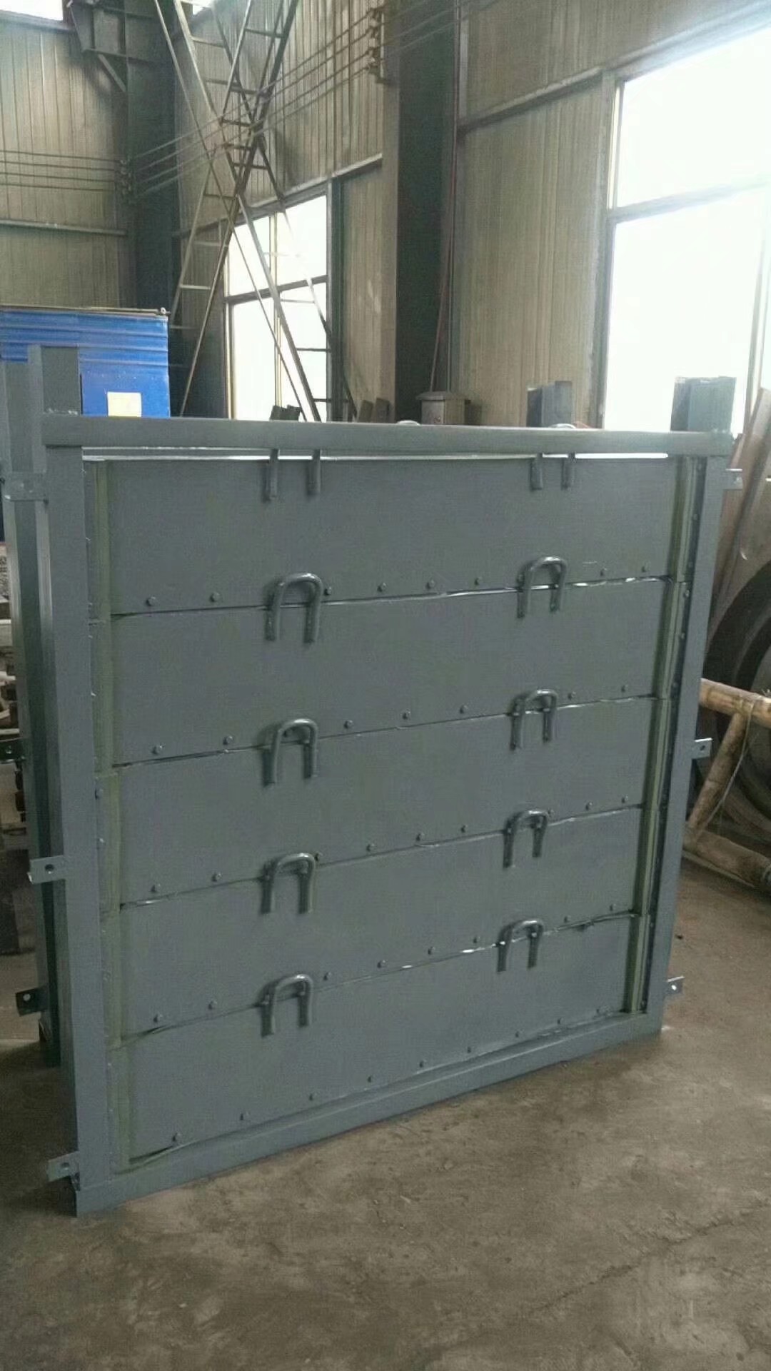 疊梁閘門是安裝在渠道中作臨時(shí)擋水,充當(dāng)檢修閘門的作用。疊梁閘門有很多種表達(dá)方式,又名疊梁閥,疊梁閘,疊梁門等。該閘門是由多塊疊梁門組合而成。使用時(shí)是逐塊將門板橫向放入門槽內(nèi)疊成一個(gè)平面擋水結(jié)構(gòu)。疊梁閘結(jié)構(gòu)簡單,自重輕、起吊力小,搬運(yùn)方便。我們通過多年研究,通過對(duì)產(chǎn)品的結(jié)構(gòu)的改進(jìn)。閘板與閘板之間止水采用高性能橡膠密封,止水效果好,克服了以往擋水結(jié)構(gòu)的整體性差的缺點(diǎn)。從而贏得國內(nèi)外客戶的好評(píng)。產(chǎn)品材質(zhì)有:碳鋼、不銹鋼、呂合金等。