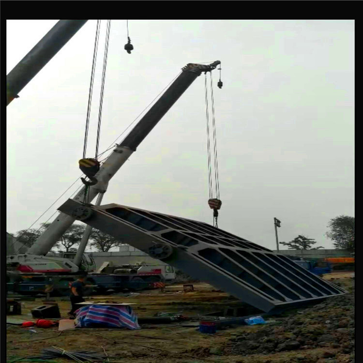 1、露頂式鋼閘門結構特點:門頂露出上游水位以上,沒有頂止水,只有側止水和底止水,面板曲率半徑R一般取門高的1.0~1.5倍。