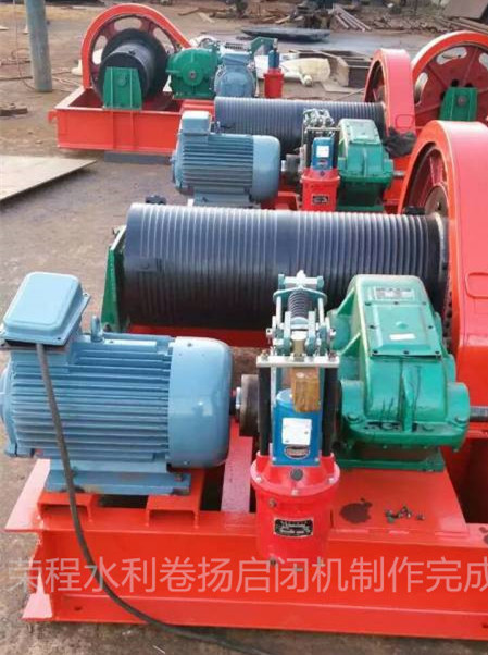 卷揚式啟閉機,是一種水利工程專用機械,廣泛用于水利工程閘門的啟閉,是農(nóng)田灌溉水產(chǎn)養(yǎng)殖、農(nóng)業(yè)經(jīng)濟開發(fā)區(qū)、污水處理廠、水利發(fā)電站、水庫(水閘、堤壩、隧道、管 道)等進水、退水閘的配套機械,山區(qū)、平原有、無電地區(qū)均可使用。 該產(chǎn)品主要由電動機、聯(lián)軸器、傳動軸、減速器、交流制動器、開式齒輪、卷筒部分、滑輪系列部分、電器控制箱、負荷控制器、手搖器及機架組成。結(jié)構(gòu)緊湊,承載能力大,運行平穩(wěn)可靠,安裝維修方便,設(shè)計合理。