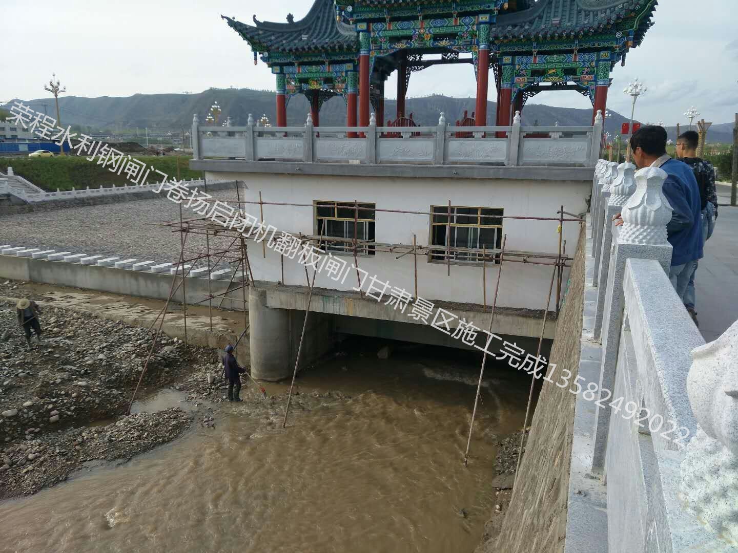 液壓景觀壩是20多種規(guī)格型號閘門中的一種,該設(shè)備由弧形(或直線)壩面、電機螺旋桿、液壓桿、支撐桿、液壓缸、啟動電站和液壓泵站組成。 用螺旋桿液壓缸直頂以底部為軸的活動攔水壩面的背部,實現(xiàn)升壩攔水,降壩行洪的目的。采用滑動支撐桿支撐活動壩面的背面,構(gòu)成穩(wěn)定的支撐墩壩。采用小液壓缸及限位卡,形成支撐墩壩固定和活動的相互交換,達到固定攔水,活動降壩的目的。采用浮標開關(guān),控制操作液壓系統(tǒng),達到無人管理,根據(jù)洪水漲落,實現(xiàn)活動壩面的自動升降。