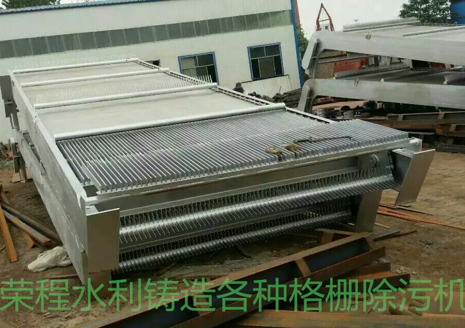 2.鏈式格柵除污機,通過鏈帶動的若干組齒耙插入靜止的柵條,將污物與水分離的格柵除污機。